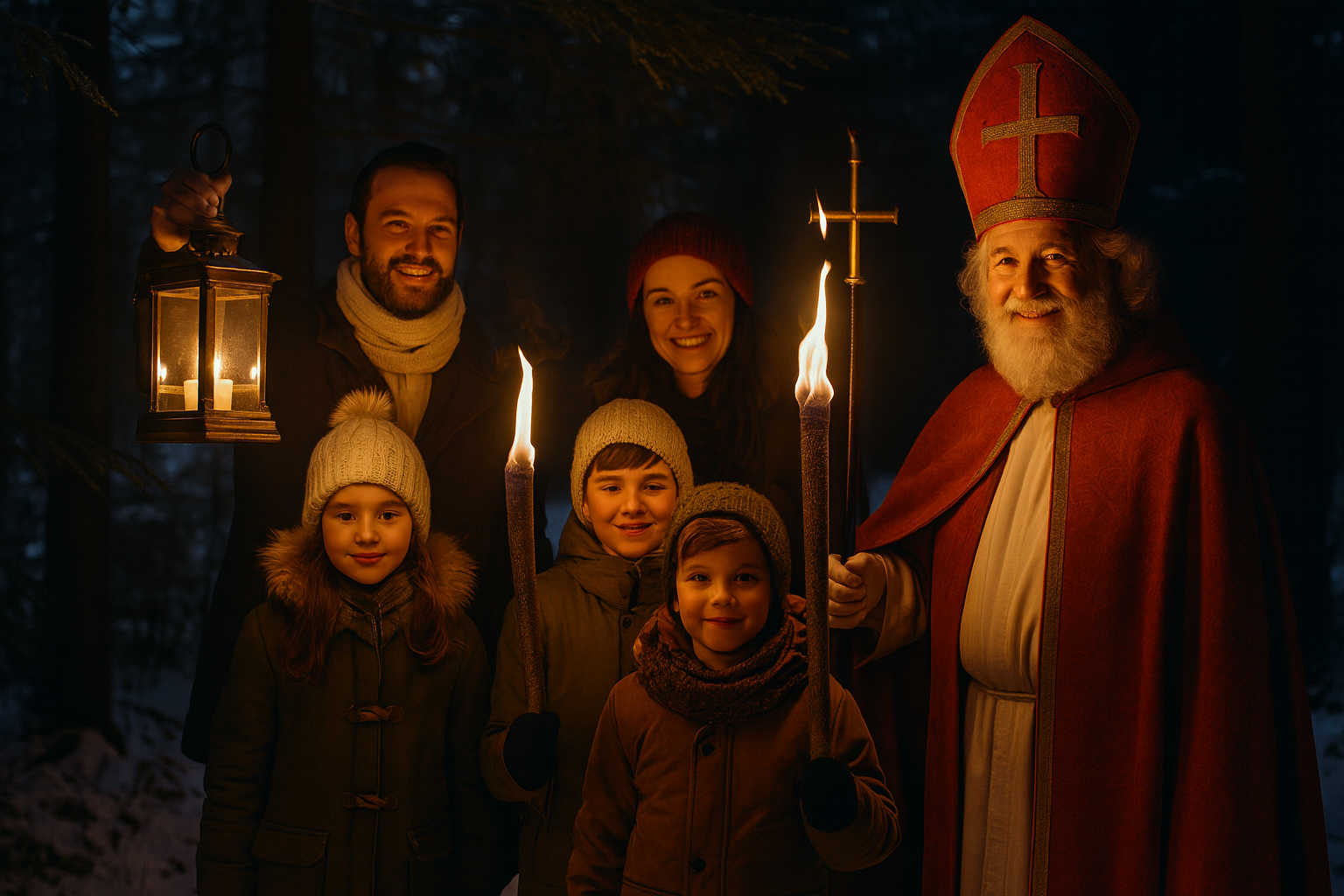 Wir versammeln uns um 18:00 Uhr auf dem Platz vor der Kirche. Gemeinsam ziehen wir mit Fackeln los, um St. Nikolaus und Knecht Ruprecht im Dreibrunner-Wäldli abzuholen. Begleitet von leuchtenden Fackeln kehren wir zum Kiesplatz vor der Kirche zurück, wo St. Nikolaus uns seine Geschichte erzählt. Besonders freut er sich über Gedichte oder Lieder der Kinder.