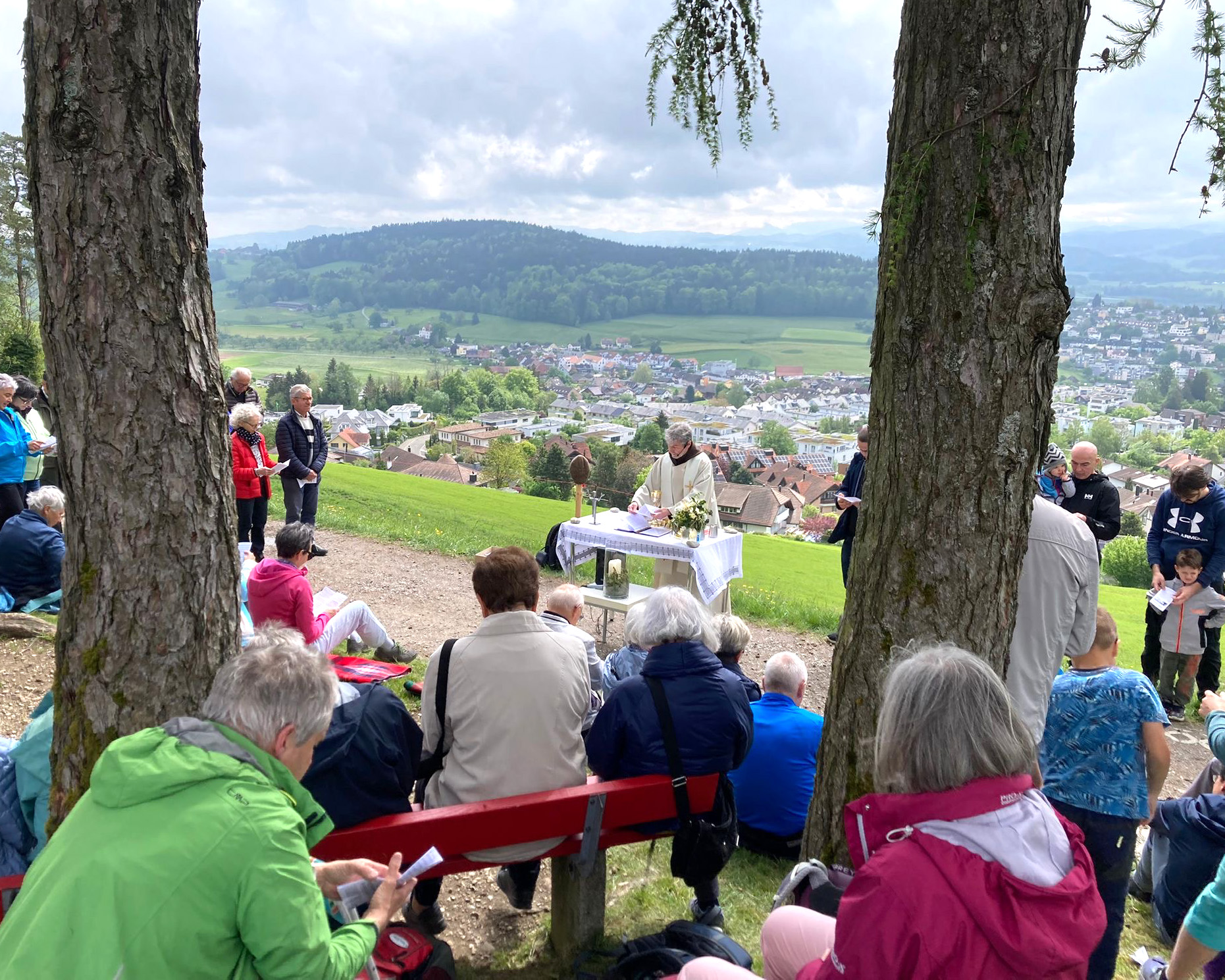 Nach der Apostelgeschichte wurde Jesus auf dem Ölberg nahe Jerusalem vor den Augen seiner Jünger zum Himmel emporgehoben. Auch wir wollen einen unserer «Berge» erklimmen und feiern die Himmelfahrt Christi auf unserem Hofberg.