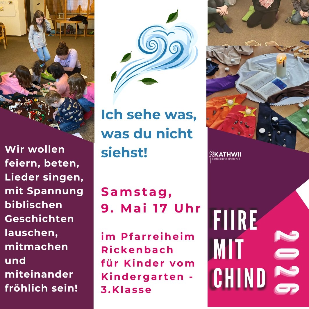 Die katholische Kirche Wil lädt Kinder vom Kindergarten bis zur 3. Klasse zu einem besonderen Nachmittag ein. Beim «Fiire mit Chind» steht das gemeinsame Feiern im Mittelpunkt – mit Beten, Singen, biblischen Geschichten und fröhlichem Beisammensein. Mitmachaktionen sorgen dafür, dass die Kinder nicht nur zuhören, sondern selbst Teil des Geschehens werden.